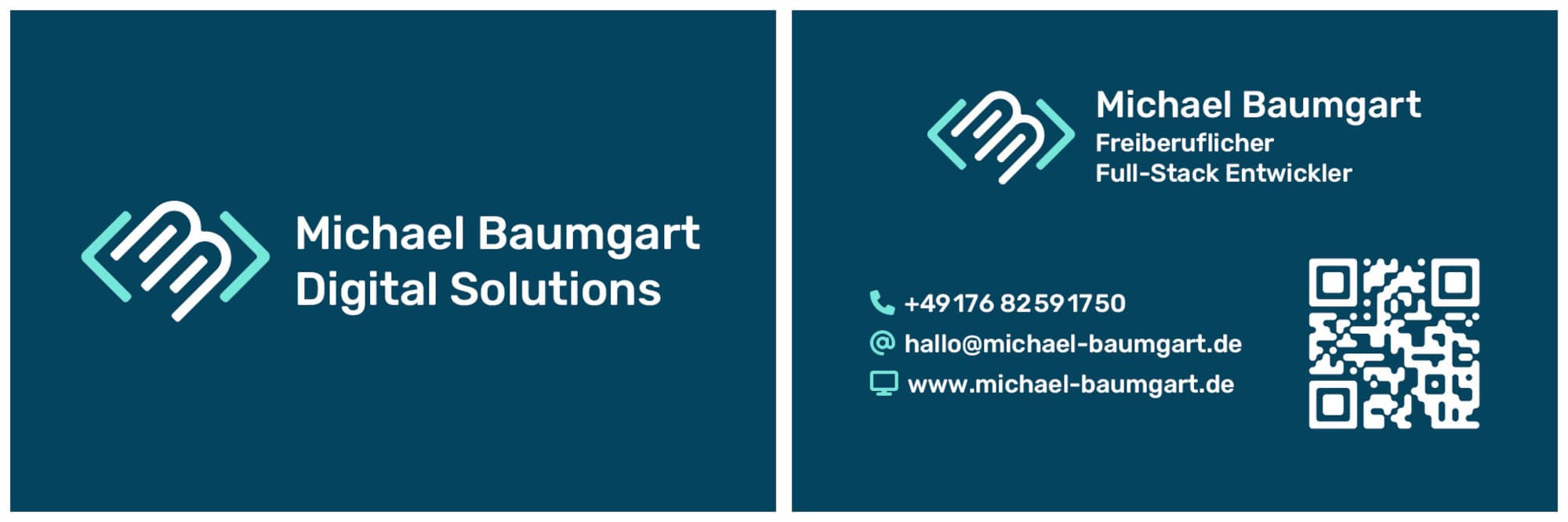 Aufbauend auf dem Design meiner Website habe ich wie geplant ein Logo und Visitenkarten (siehe unten) entwickelt. Um insbesondere für Bewerbungen auf Projekte die visuelle Identität meiner Marke weiter zu optimieren habe ich zusätzlich meinen Lebenslauf überarbeitet und eine E-Mail Signatur erstellt. Durch die überarbeiteten Banner auf meinen LinkedIn-Seiten (Profil und Firma) bin ich jetzt auf allen Kanälen mit einem einheitlichen Design unterwegs.